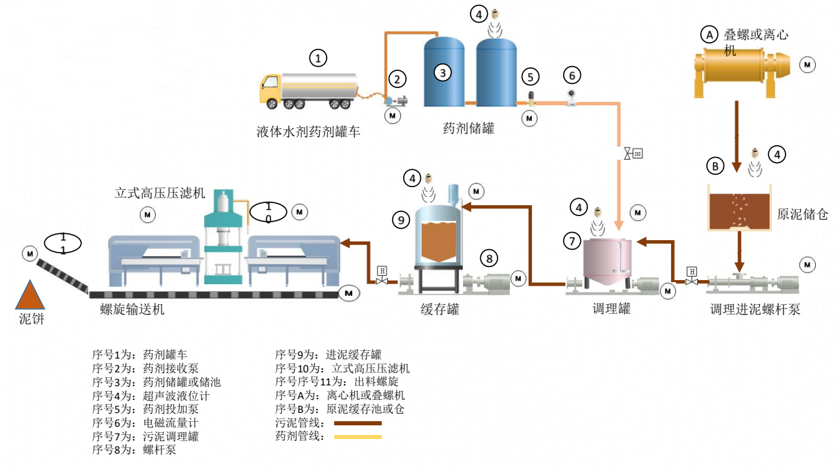 100吨市政污泥减量系统流程及物料平衡图表